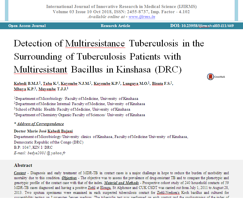Kabedi B.M.J., Taba K., Kayembe N.J.M., Kayembe K.P., Lunguya M.O., Bisuta F.S., Mbaya K.P., Muyembe T.J.J.