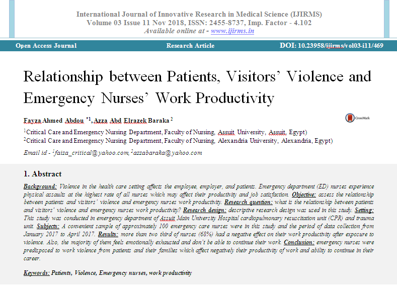 Relationship between Patients, Visitors’ Violence and Emergency Nurses’ Work Productivity