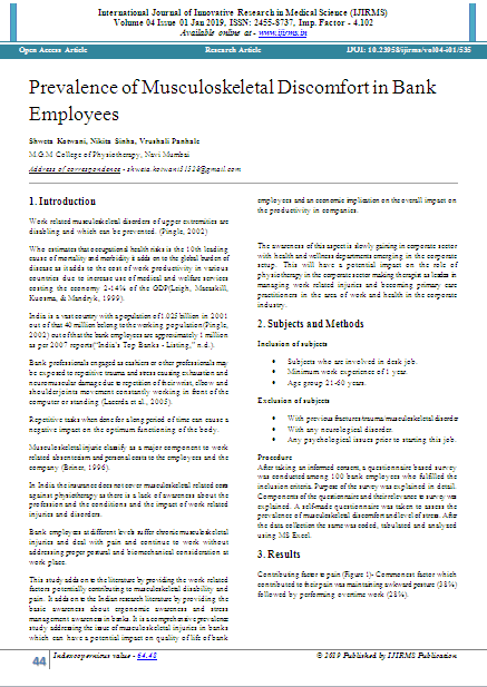 Prevalence of Musculoskeletal Discomfort in Bank Employees
