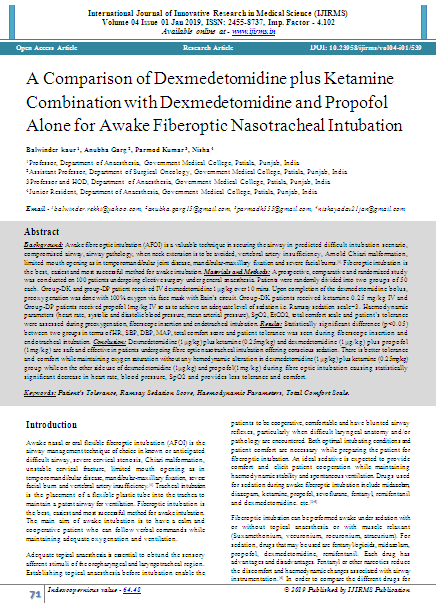 Comparison of Dexmedetomidine Plus Ketamine Combination with Dexmedetomidine Plus Propofol for Awake Fiberoptic Nasotracheal Intubation: A Prospective Randomised and Controlled Clinical Trial
