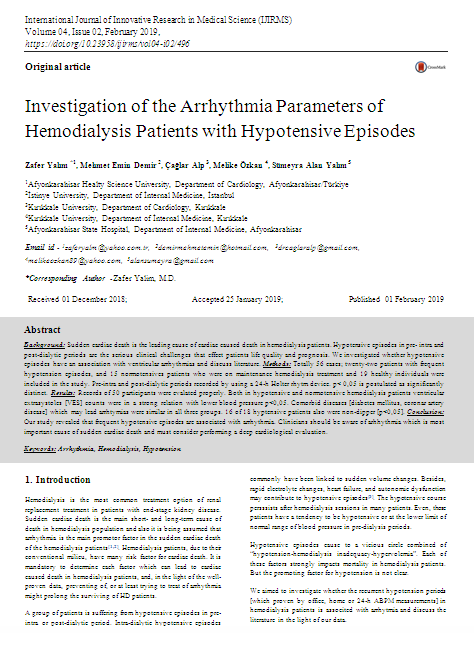Investigation of the Arrhythmia Parameters of Hemodialysis Patients with Hypotensive Episodes