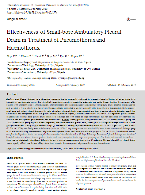 Effectiveness of Small-bore Ambulatory Pleural Drain in Treatment of Pneumothorax and Haemothorax