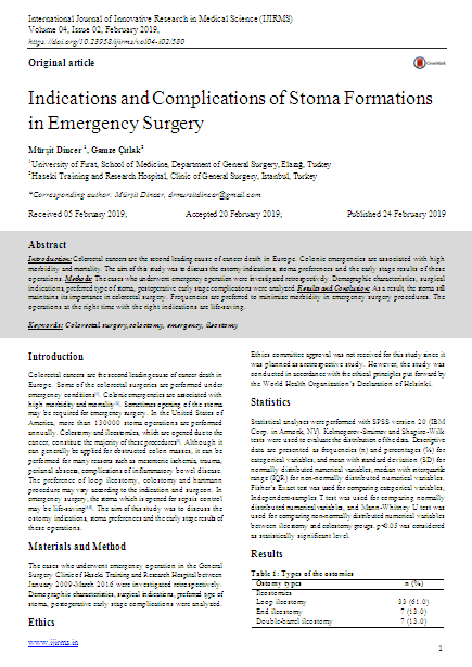 Indications and Complications of Stoma Formations in Emergency Surgery