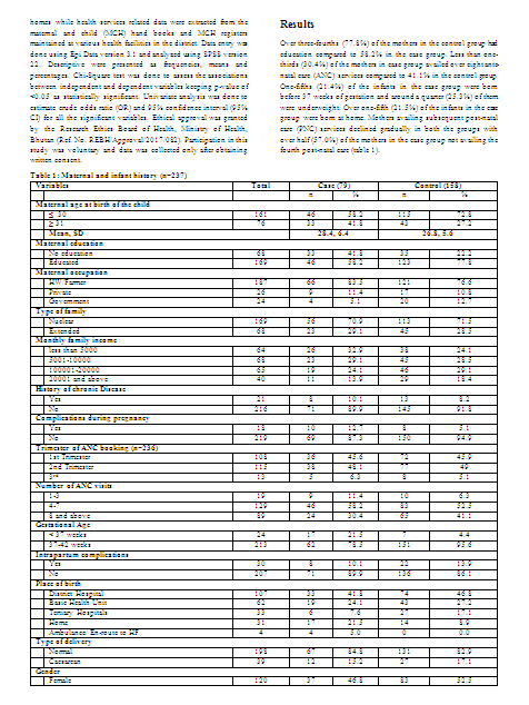 Determinants of Infant Mortality in Samdrup Jongkhar District, Bhutan