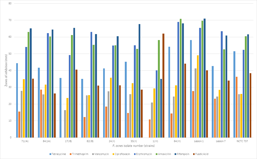 Determination of Antimicrobial Susceptibility Patterns between Different Strains of Propionibacterium Acnes