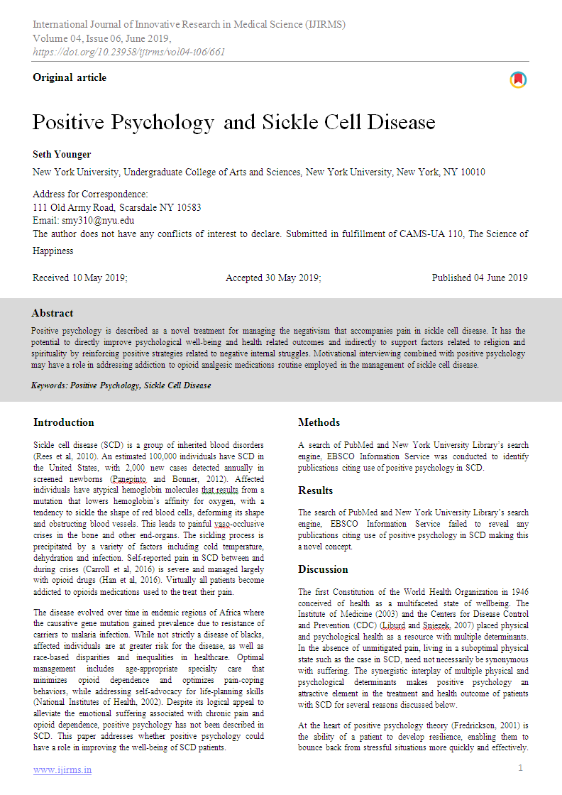 Positive Psychology and Sickle Cell Disease