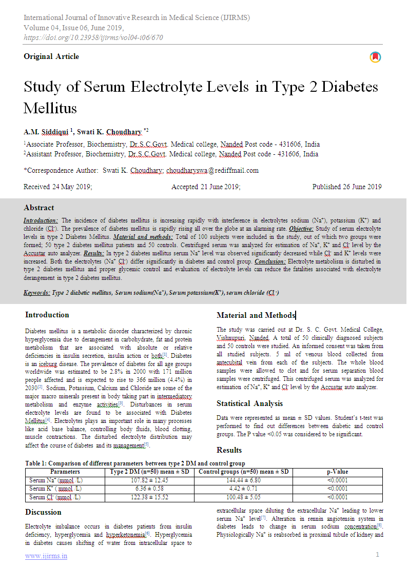 Study of Serum Electrolyte Levels in Type 2 Diabetes Mellitus