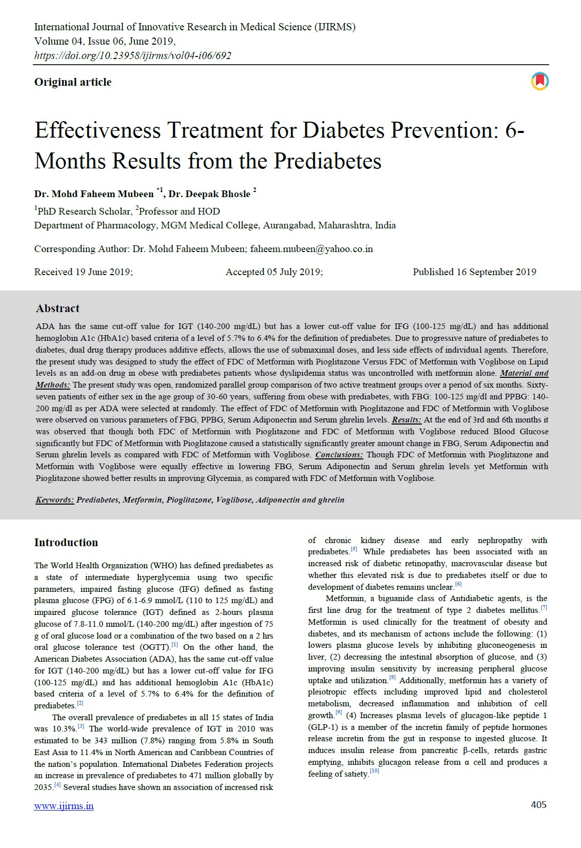 International Journal of Innovative Research in Medical Science