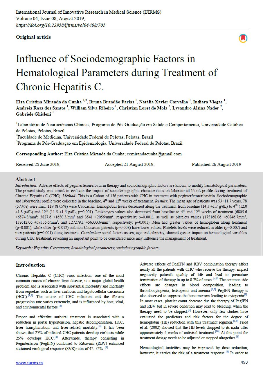 Influence of Sociodemographic Factors in Hematological Parameters during Treatment of Chronic Hepatitis C.