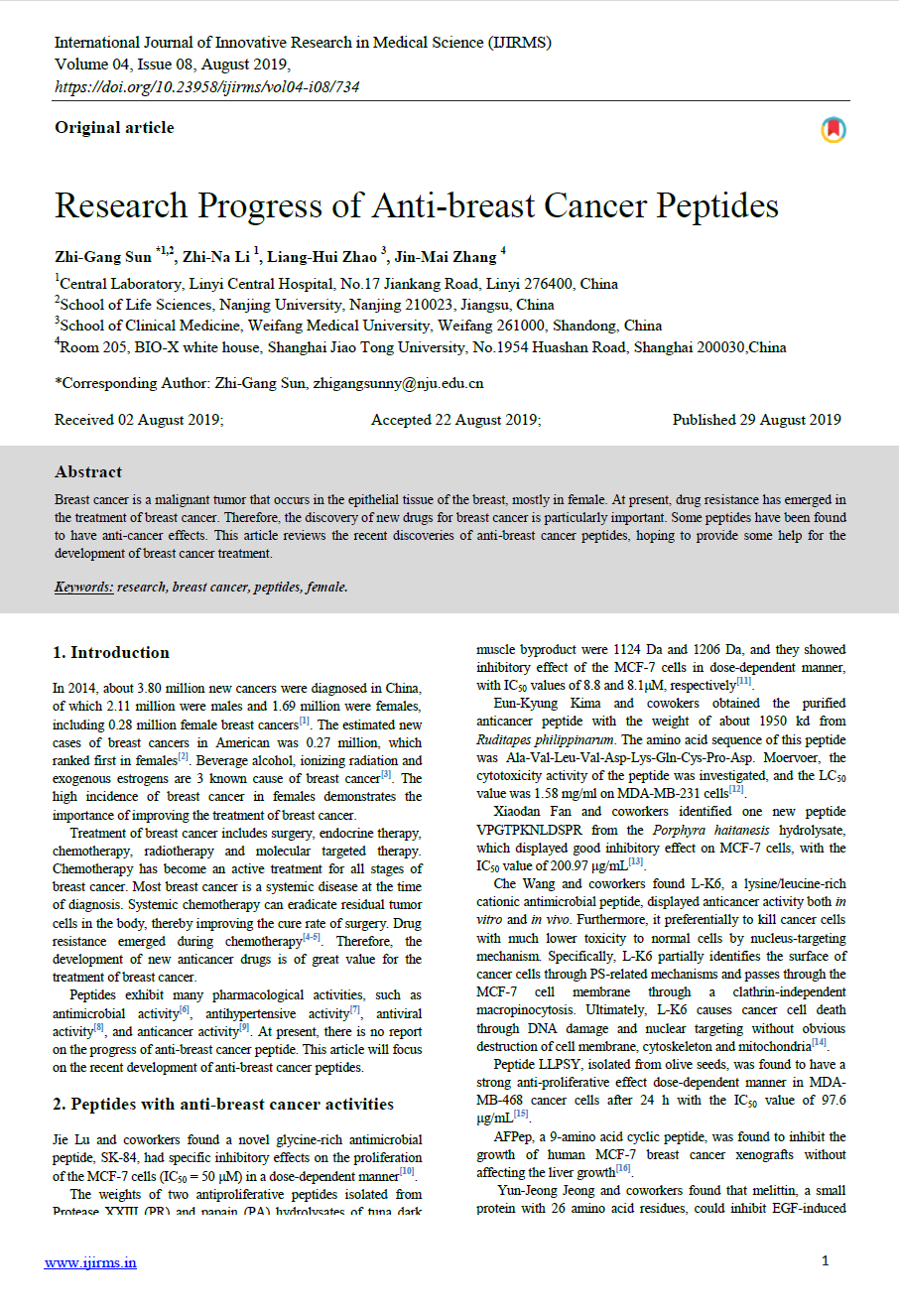 Research Progress of Anti-breast Cancer Peptides