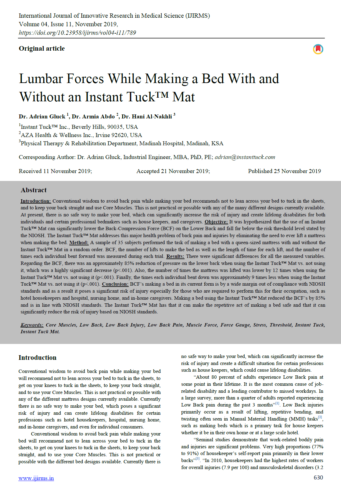 Lumbar Forces While Making a Bed With and Without an Instant Tuck™ Mat