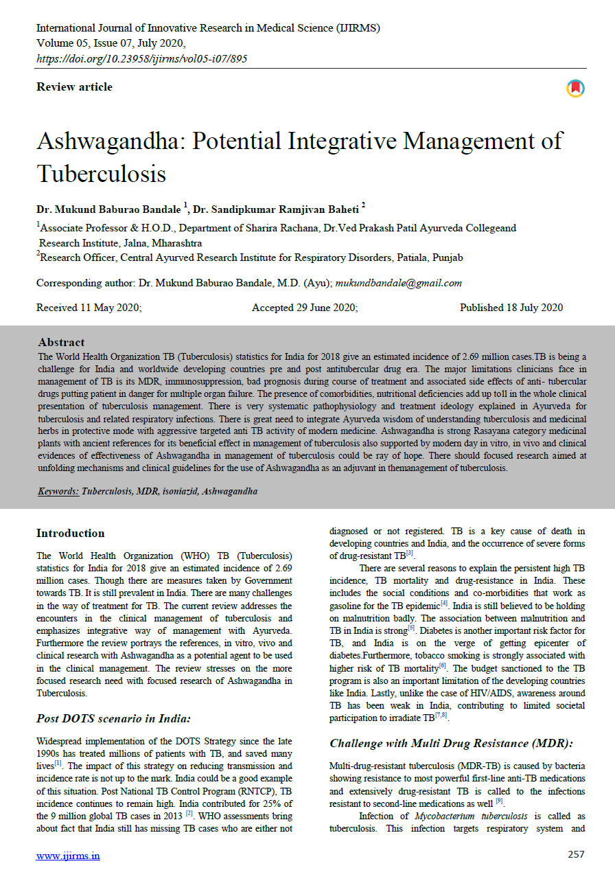 Ashwagandha: Potential Integrative Management of Tuberculosis