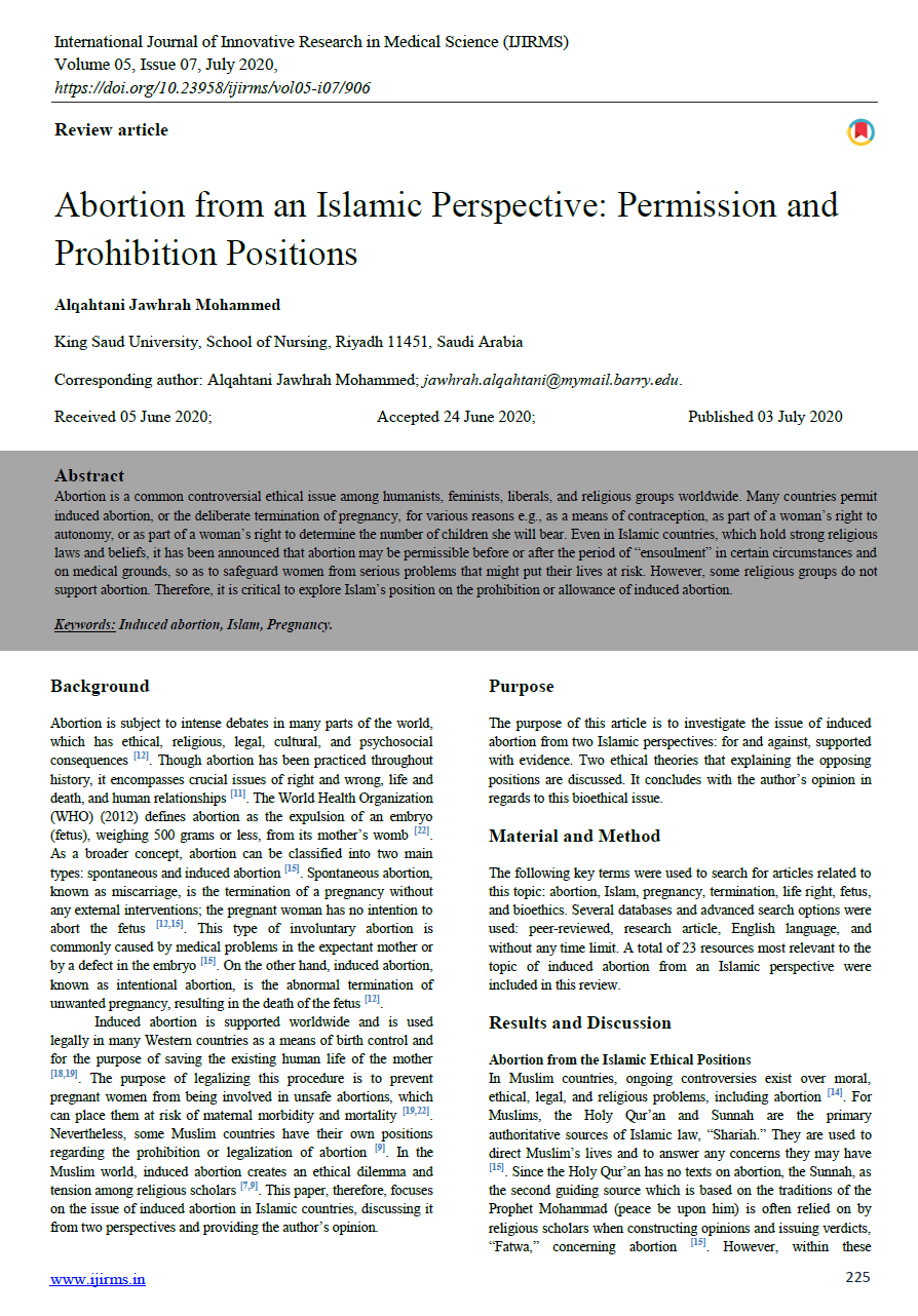 Abortion from an Islamic Perspective: Permission and Prohibition Positions