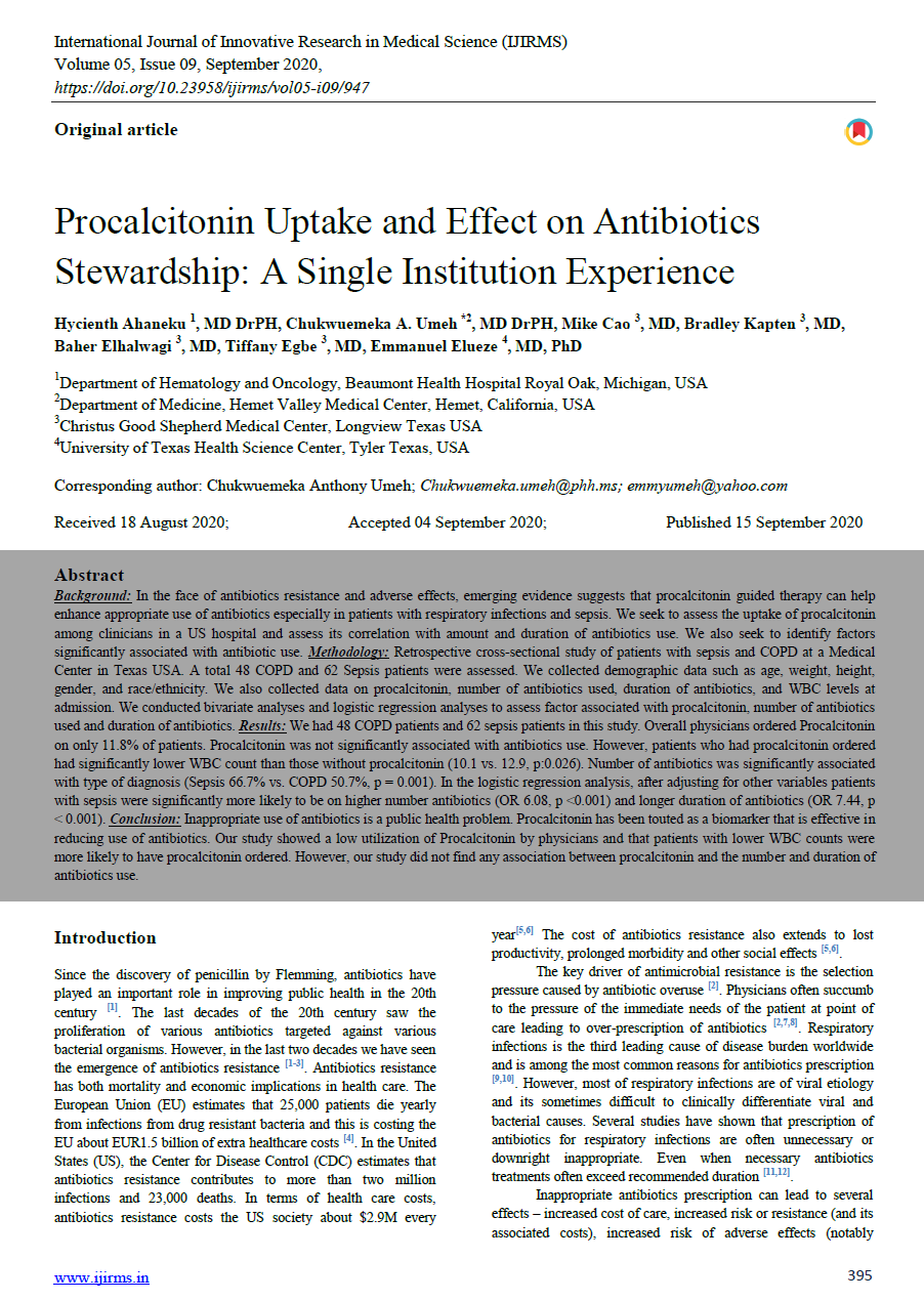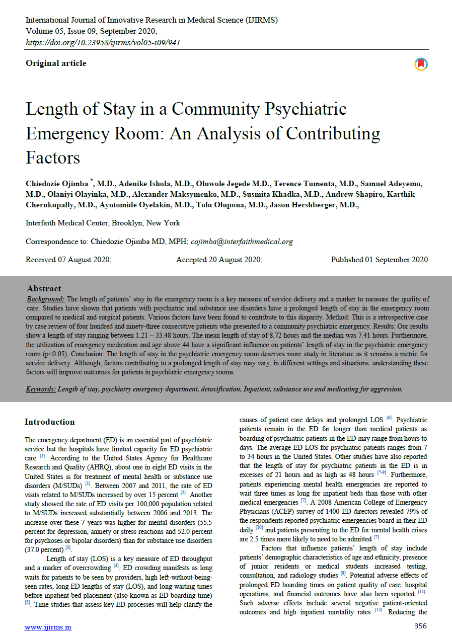 Chiedozie Ojimba, M.D., Adenike Ishola, M.D., Oluwole Jegede M.D., Terence Tumenta, M.D., Samuel Adeyemo, M.D., Olaniyi Olayinka, M.D., Alexander Maksymenko, M.D., Susmita Khadka, M.D., Andrew Shapiro, Karthik Cherukupally, M.D., Ayotomide Oyelakin, M.D., Tolu Olupona, M.D., Jason Hershberger, M.D.