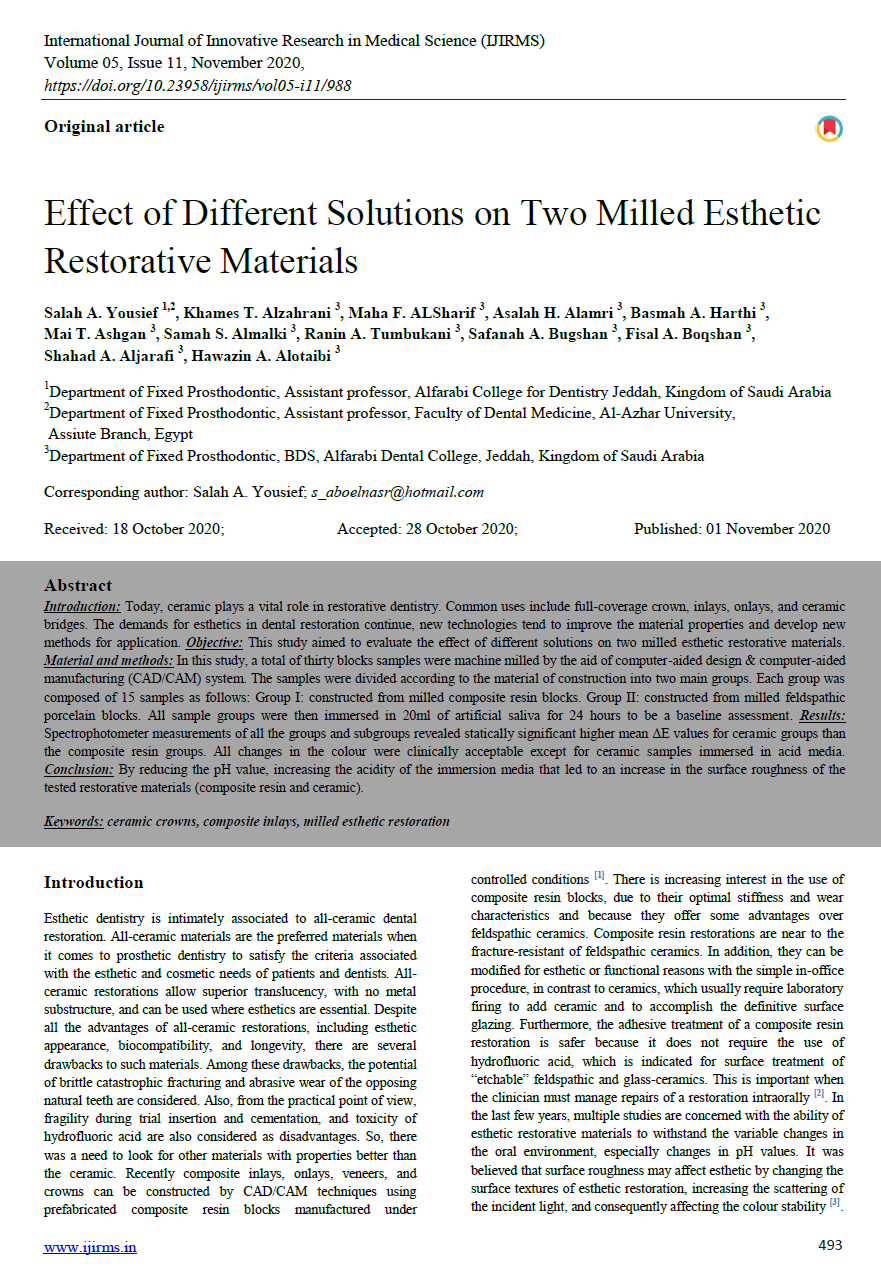 Salah A. Yousief, Khames T. Alzahrani, Maha F. ALSharif, Asalah H. Alamri, Basmah A. Harthi, Mai T. Ashgan, Samah S. Almalki, Ranin A. Tumbukani, Safanah A. Bugshan, Fisal A. Boqshan, Shahad A. Aljarafi, Bayan A. Ibrahim, Haneen A. Altuni, Hawazin A. Alotaibi