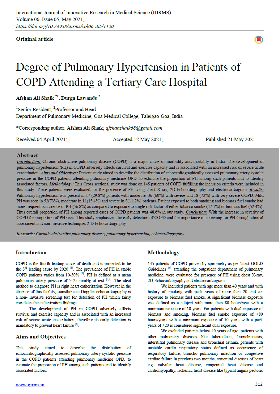 Degree of Pulmonary Hypertension in Patients of COPD Attending a Tertiary Care Hospital