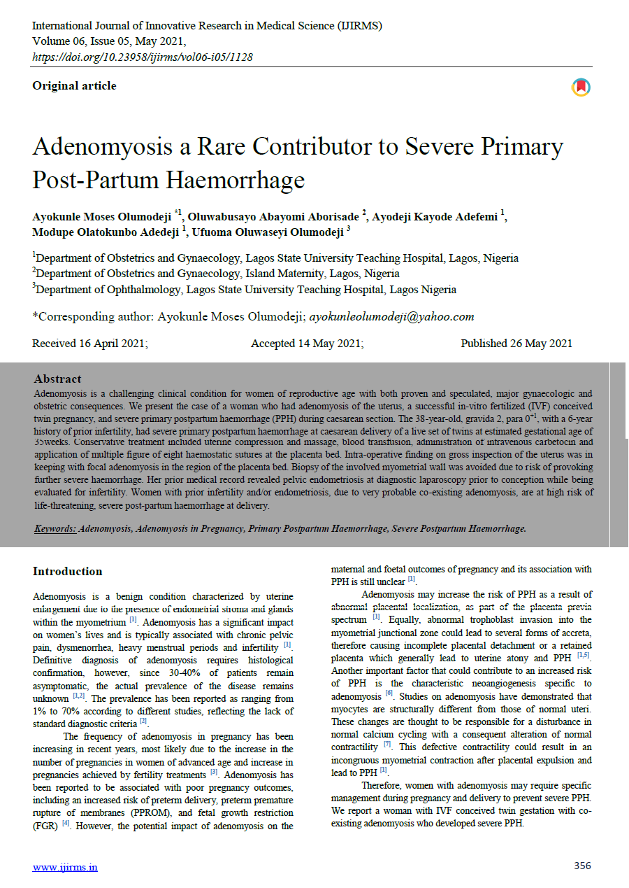 Adenomyosis a Rare Contributor to Severe Primary Post-Partum Haemorrhage