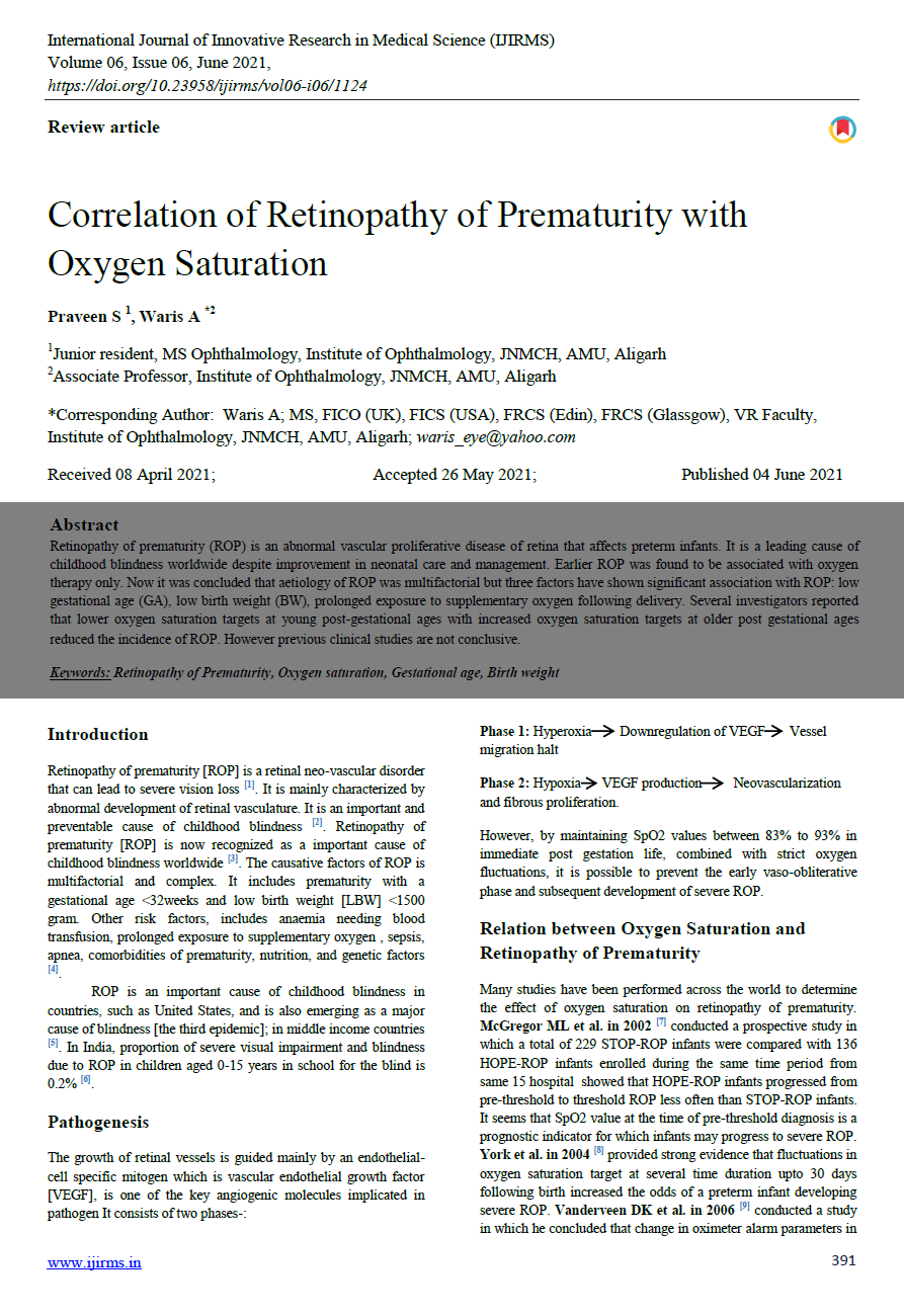 Correlation of Retinopathy of Prematurity with Oxygen Saturation
