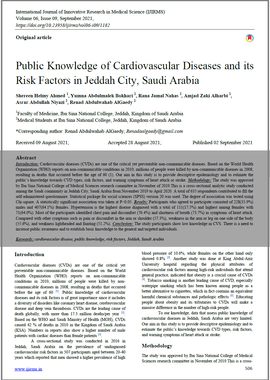 Public Knowledge of Cardiovascular Diseases and its Risk Factors in Jeddah City, Saudi Arabia