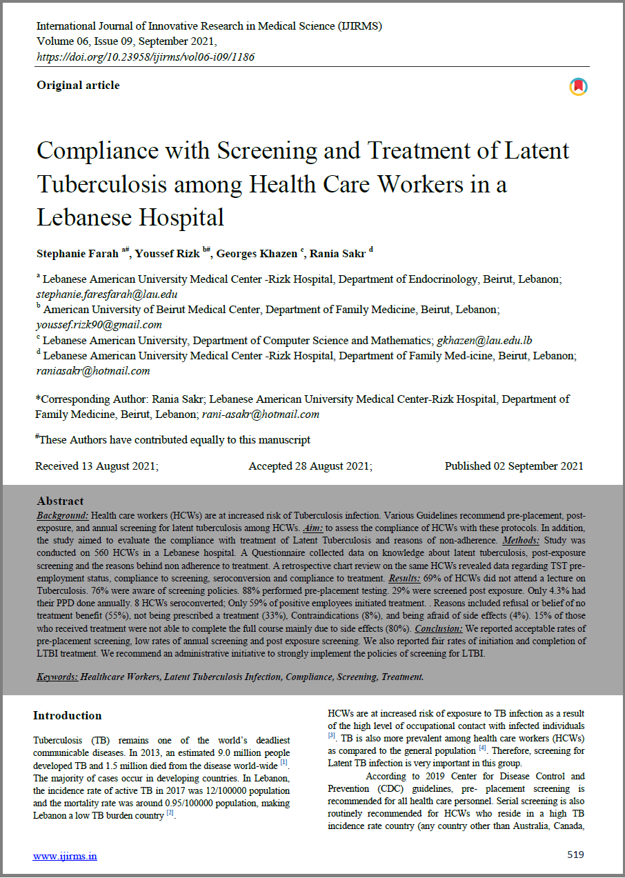 Compliance with Screening and Treatment of Latent Tuberculosis among Health Care Workers in a Lebanese Hospital
