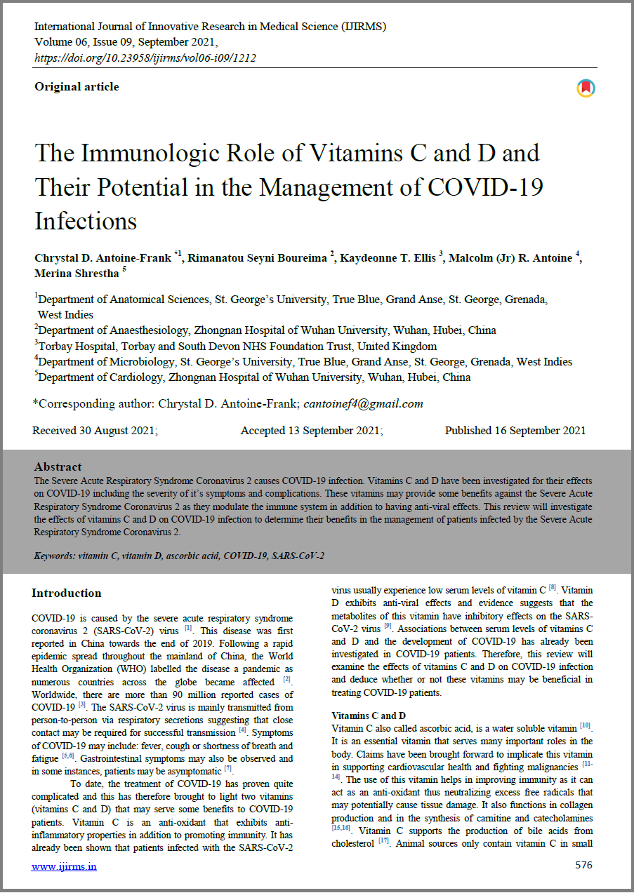 The Immunologic Role of Vitamins C and D and Their Potential in the Management of COVID-19 Infections