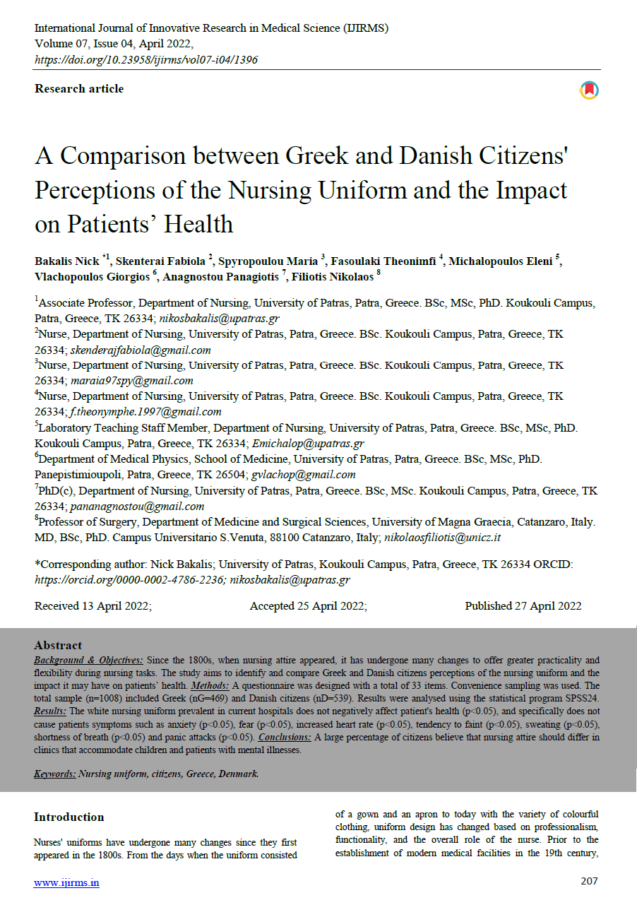 A Comparison between Greek and Danish Citizens' Perceptions of the Nursing Uniform and the Impact on Patients’ Health