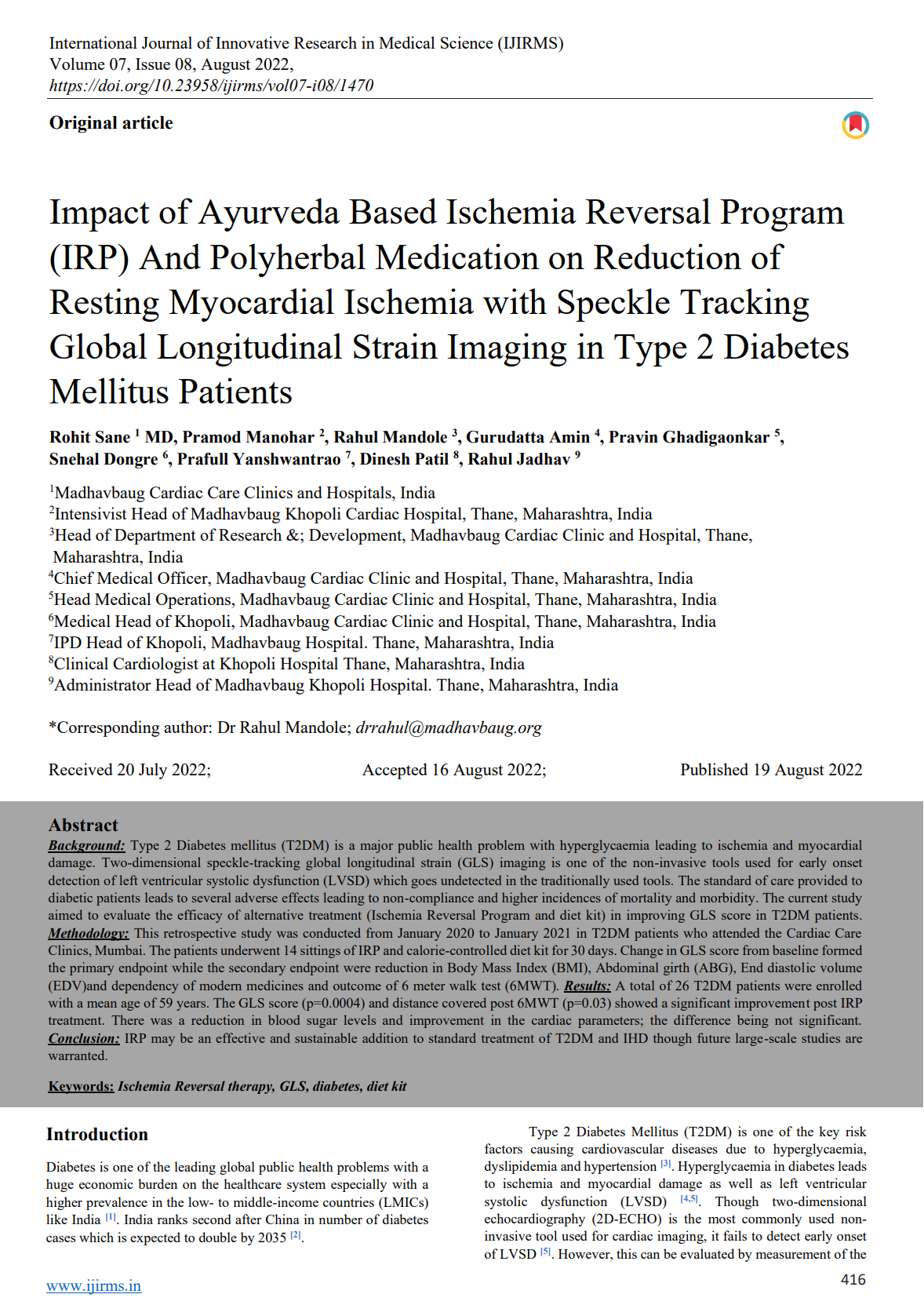 Impact of Ayurveda Based Ischemia Reversal Program (IRP) And Polyherbal Medication on Reduction of Resting Myocardial Ischemia with Speckle Tracking Global Longitudinal Strain Imaging in Type 2 Diabetes Mellitus Patients