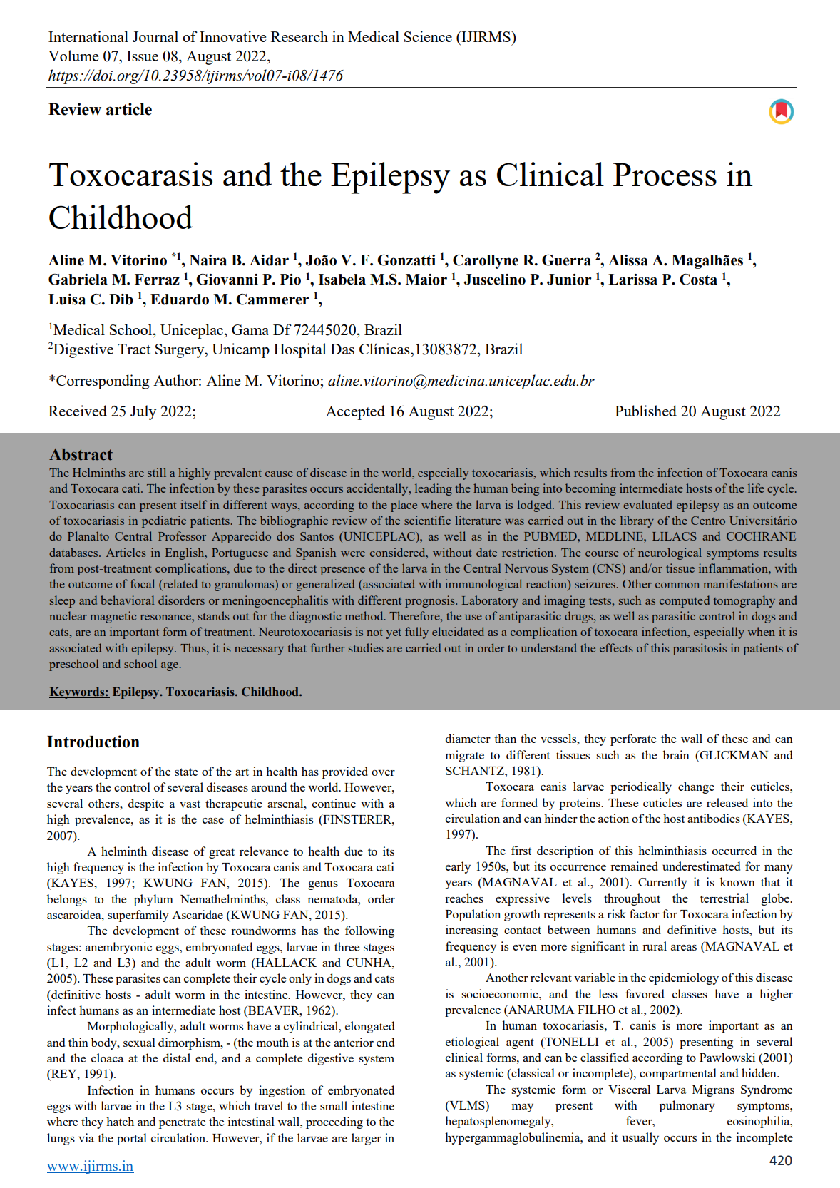 Toxocarasis and the Epilepsy as Clinical Process in Childhood