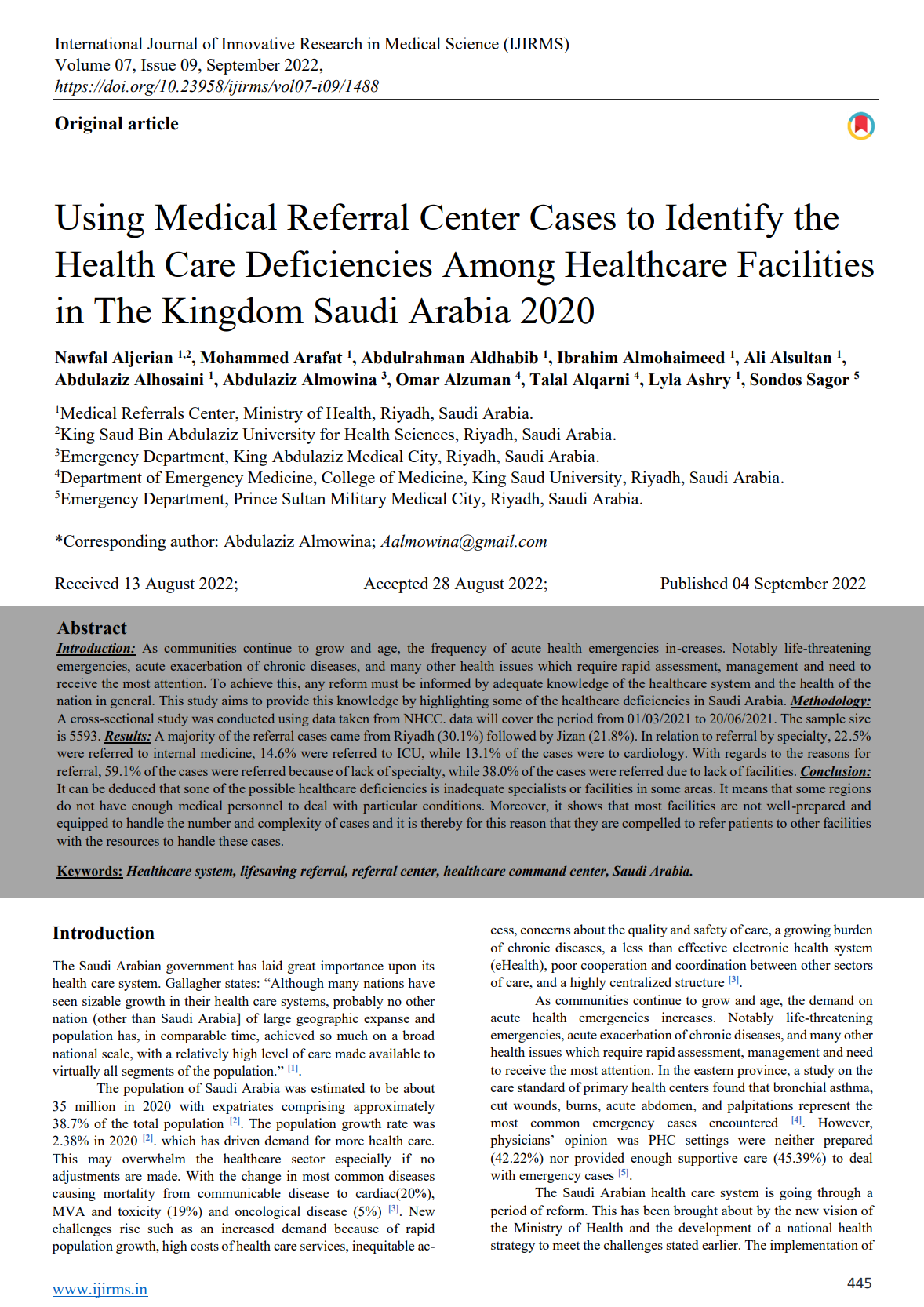 Dr Sami Faisal Jamdar, Dr Ahmed Alshammari, Dr Manal Mohammad Almutairi, Dr Malak Albandar, Dr Saja Abdulaziz Asiri, Dr Abdullah Al Hussain, Dr Majid Alshammari