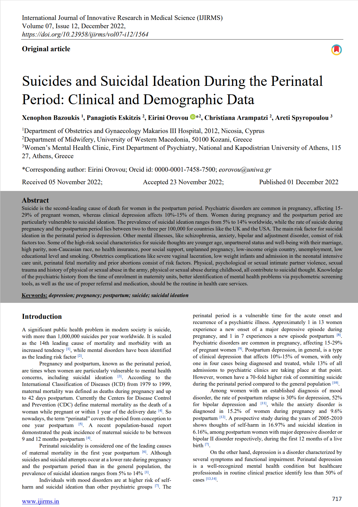Suicides and Suicidal Ideation During the Perinatal Period: Clinical and Demographic Data